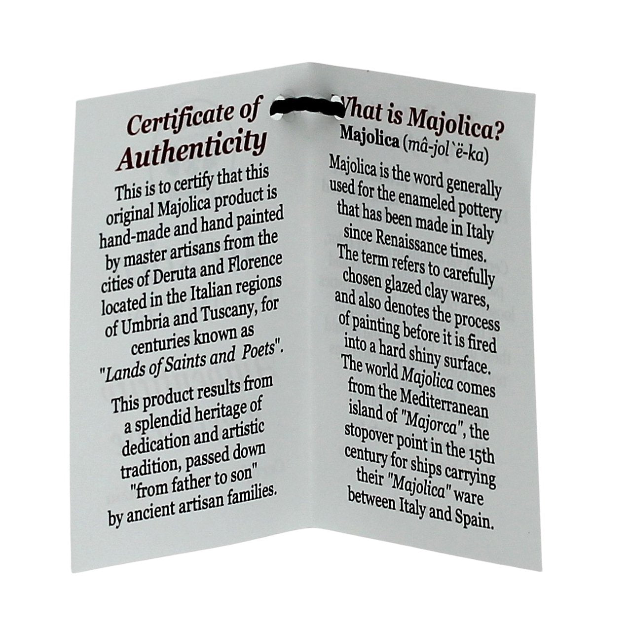 Painstakingly hand painted in refined vibrant colors that will highlight your Holiday decorations, adding nostalgic warmth and sparkle to the holiday tree. Authentic Deruta products, exclusively manufactured for Artistica's USA market. Each piece is shipped elegantly boxed, and therefore making an exquisite gift item!