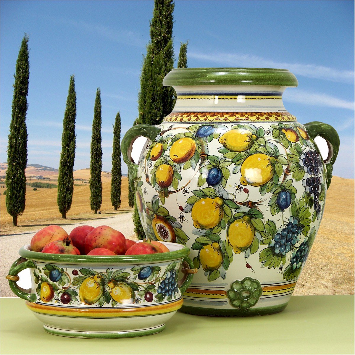 These durable planters are double-fired and hand-painted by master artists from Montelupo, a renowned Tuscan town, suitable for outdoor use; they are quite heavy, which ensures that they stay securely in place.