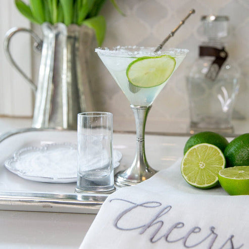 Graceful forms of glittering glass are combined with handcrafted pewter stems. This timeless glass adds an elegant feel to any table. Italian pewter and glass, Hand made in Italy. Hand wash only, do not soak, wash with luke warm water, and dry immediately.