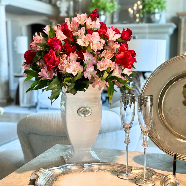 Arte Italica best-selling Tuscan Collection, the first pewter and ceramic dinnerware introduced to the marketplace, combines white ceramic with our signature pewter trim.