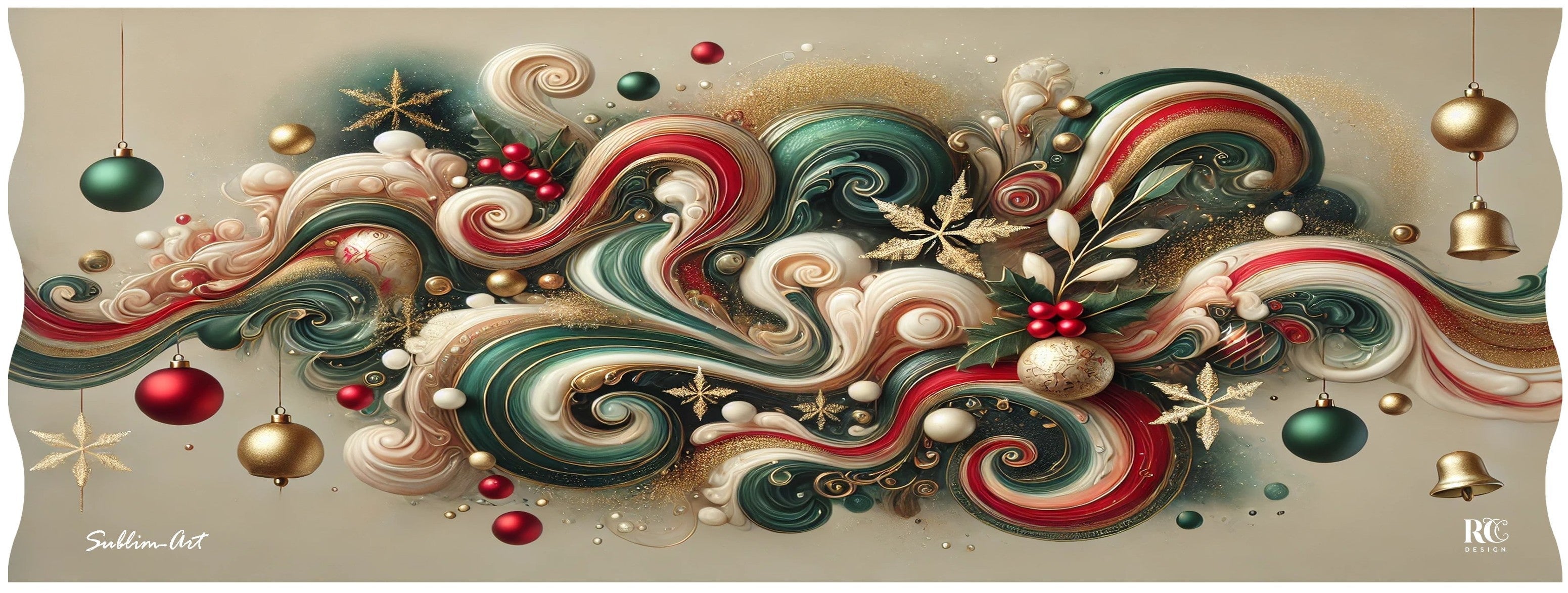 Crafted using sublimation techniques, it boasts a unique and artistic design that features an innovative "Fluid Wave" pattern, complemented by subtle Christmas elements, including ornaments and traditional winter images.