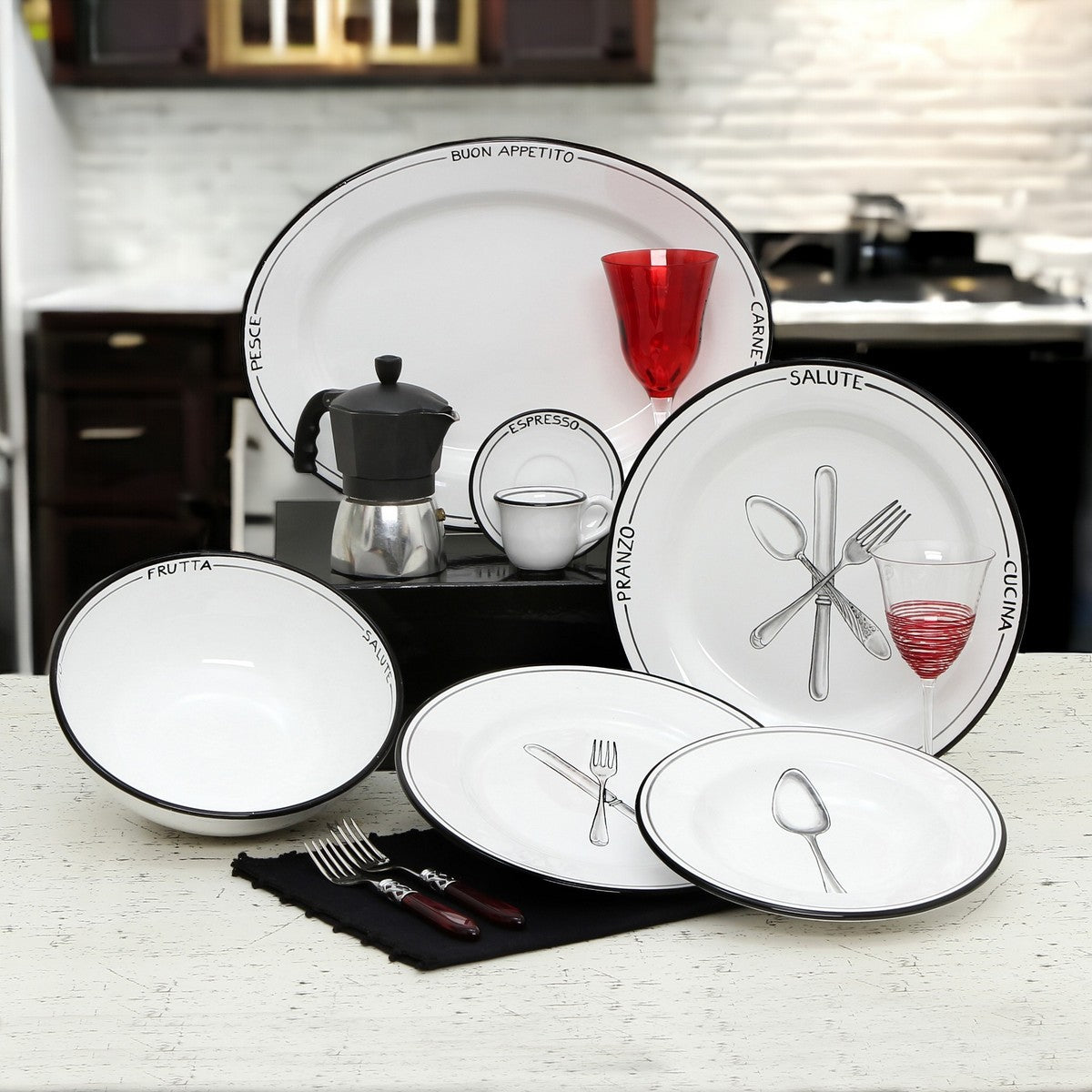 One of Italy’s most beloved Deruta collections, POSATA, has been reimagined with a bold new look by Peri Wolfman—a renowned retailer, author, and trendsetter. The original gold trim has been replaced with a sophisticated deep black, adding a modern touch to this timeless design.