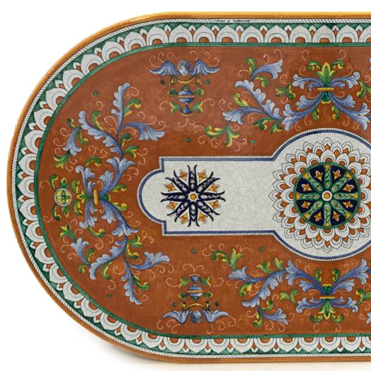ABOUT OUR TABLES At Artistica, we proudly offer Deruta Italian hand painted stone tables, created from carefully selected slabs of volcanic stones thoroughly selected, refined from impurities and finishes throughout a double fired process.