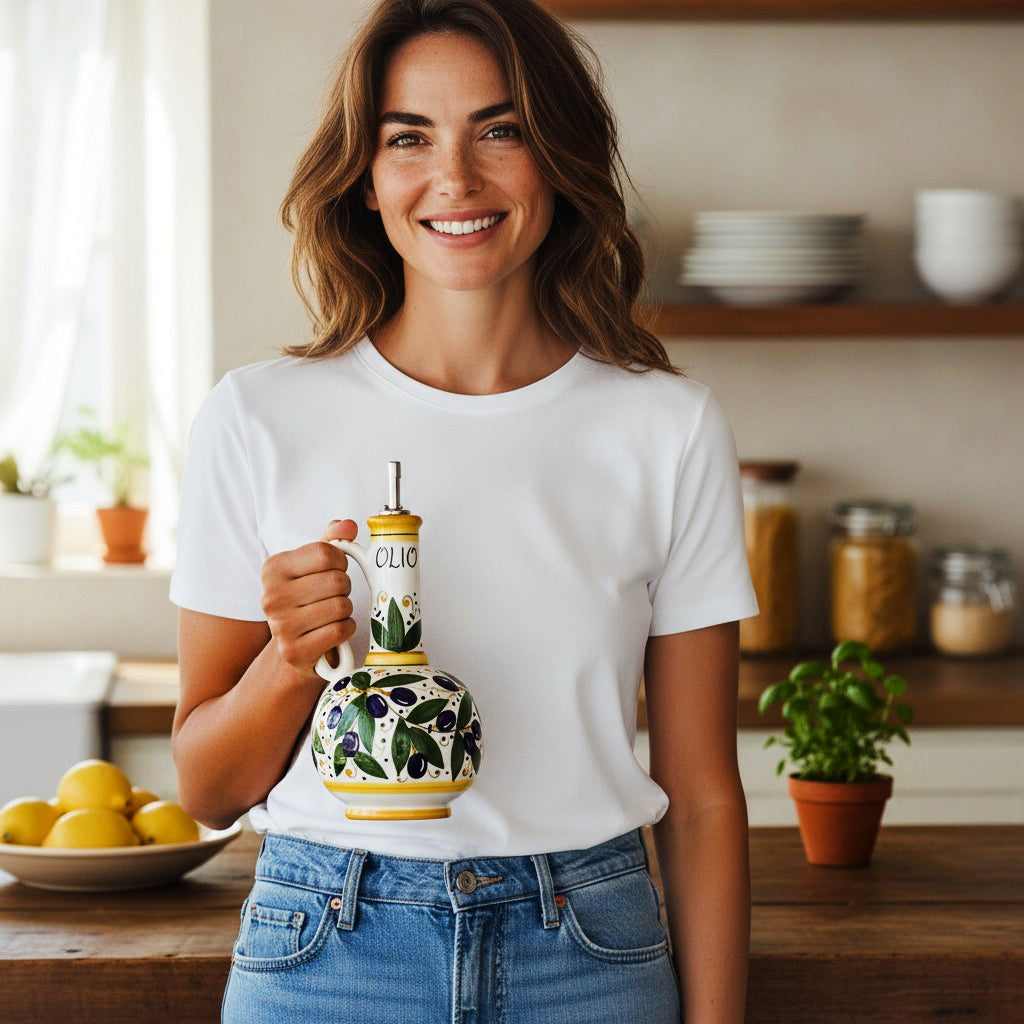 Ceramic Oil Dispenser: Handmade in Italy.
